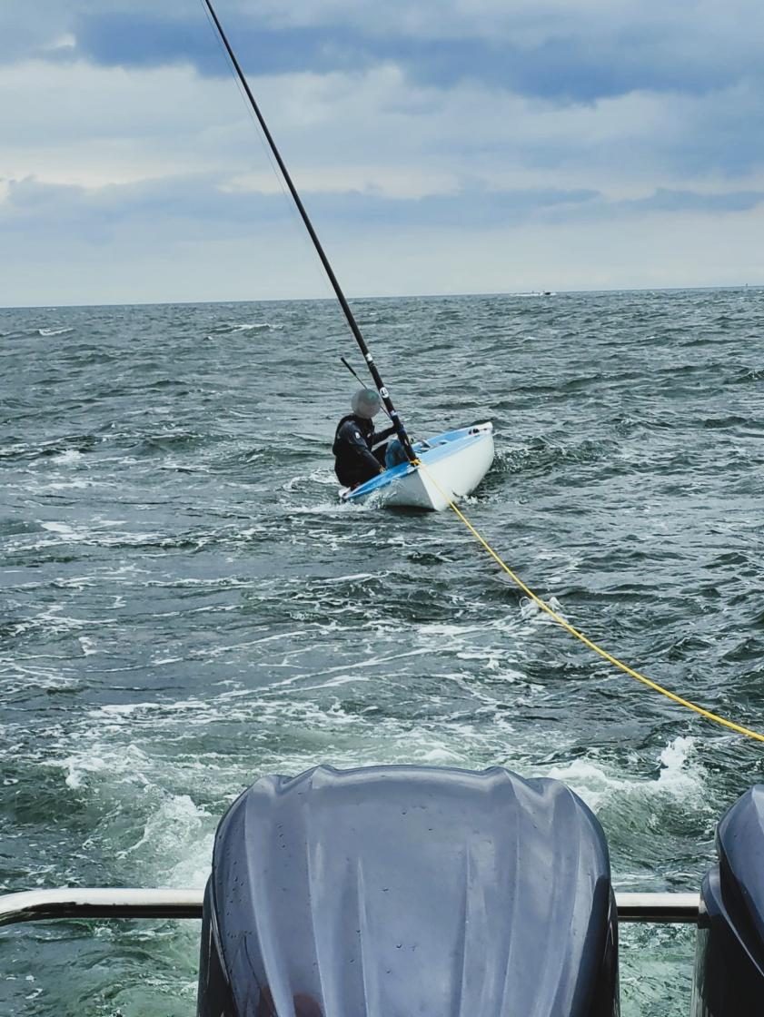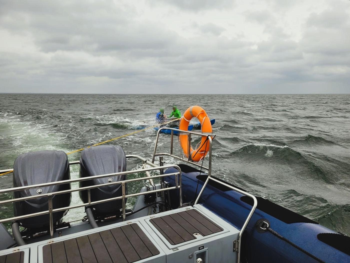 Later that day, at 4:20 PM, while patrolling the Puck Bay near Osłonino, officers spotted two men on a catamaran signalling for help. The craft had capsized earlier, and tangled lines left it unable to manoeuvre in force 4 wind conditions. The sailors – from Kraków and Łódź – were both equipped with life vests and neoprene suits but again had no way to communicate their distress. After nearly two hours adrift, the pair were towed to safety. No medical assistance was needed.