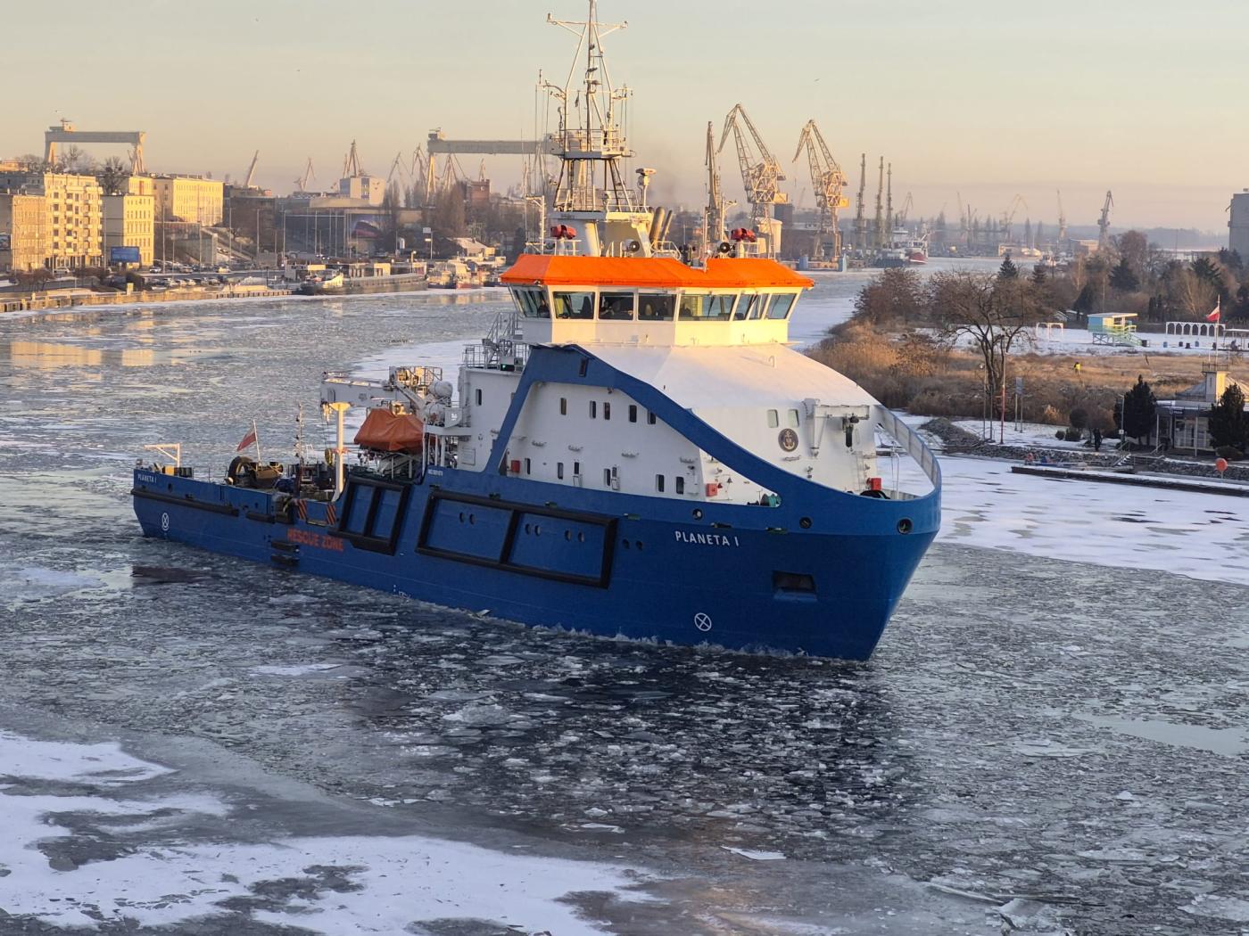 The first voyage of the year by the Maritime Office vessel Planeta I took place over the weekend on the Świnoujście–Szczecin route, performing icebreaking tasks in accordance with maritime authority responsibilities.